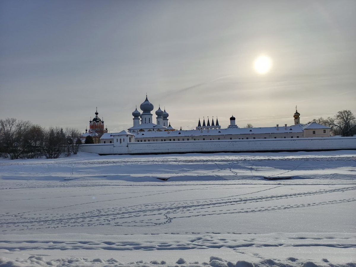 Чтоб снег, солнце , небо, белые стены и купола. Несколько лет на Масленицу мы в Ярославль попадали. Счастье... В этом за неимением времени решили навестить Тихвин и не пожалели. Нам повезло: солнечно, снежно, тихо. Туристов нет да и местных немного... В Тихвин едут прежде всего ради Тихвинской иконы Божьей Матери, которая, как гласит предание, еще в 14 веке явилась людям на берегу речки Тихвинки. Сейчас на этом месте стоит так называемая Полковая церковь. А в 16 веке на другом берегу реки возник Успенский мужской монастырь, где икона находилась до Великой Отечественной войны. Отступая, немцы вывезли ее в Ригу, где она оказалась у православного священника отца Иоанна (Гарклавса). Отец Иоанн был вывезен в Германию, оттуда попал в Чикаго, где икона находилась до 2004 года: согласно завещанию отца Иоанна возвращение иконы на родину должно было состояться только после возрождения Тихвинской обители. .