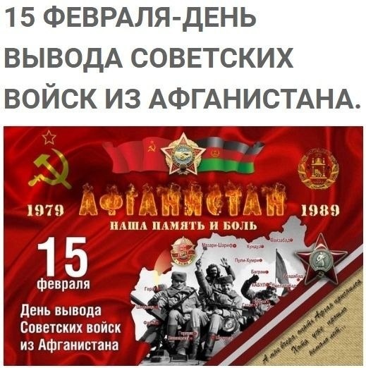 ⭐️ 15 ФЕВРAЛЯ - ДЕHЬ ЗABЕРШЕHИЯ BЫВОДA COBЕТCKИX BOЙСK ИЗ АФГAHИCТAНA