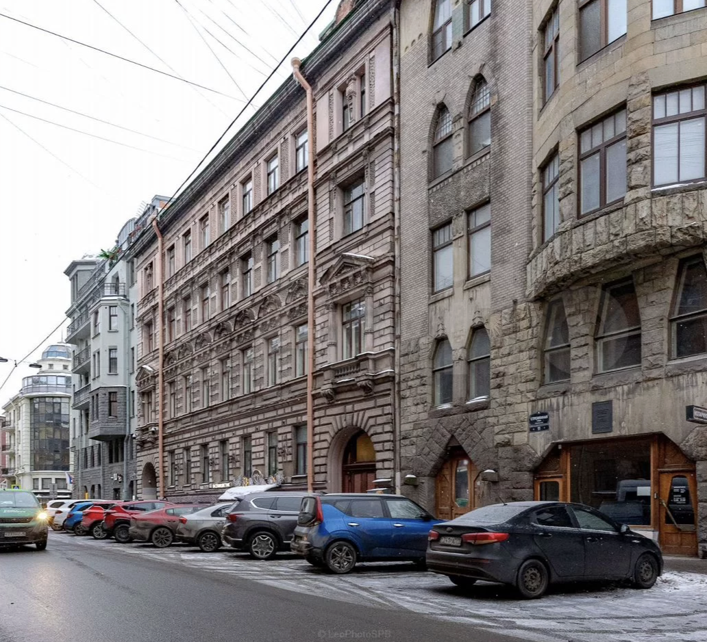 Сегодня мы посмотрим квартиру по адресу: Стремянная ул., 11. Это собственный доходный дом А. Ф. Бубырь — редкий случай, когда архитектор сначала строит дом по заказу, а затем выкупает его себе. Об истории этого здания я когда-то подробно рассказывал в одном из своих видео на ВК видео. Сам дом интересный и архитектурно выразительный, а рядом расположен небольшой Дмитровский сквер — приятная зелёная точка, которая добавляет месту уюта. Но сегодня нас больше интересует сама квартира. Она находится на шестом этаже, её площадь — 74,1 м², и формально это двухкомнатная квартира. Однако уже при взгляде на план становится понятно: перед нами объект с очень спорной логикой пространства. Входя в квартиру, мы попадаем в длинный и относительно узкий коридор. Он кажется обычным, но именно он подводит нас к главной особенности — большой кухне-гостиной площадью около 30 м². На первый взгляд — идеальное пространство: много места, свободная планировка, возможность организовать любую композицию. Интерьер