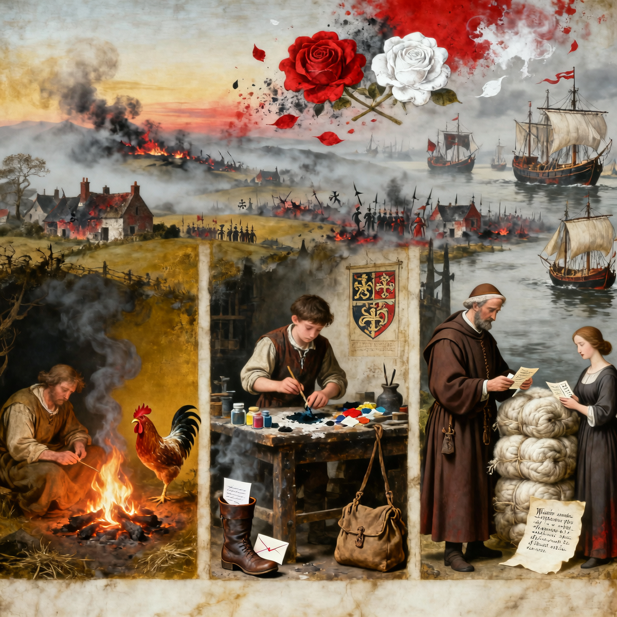 Они не знали, что живут внутри войны. Для человека пятнадцатого столетия время текло иначе — не годами и десятилетиями, а сменой времен года, сбором урожая, рождением наследников и смертью королей. Крестьянин в Кенте просыпался от криков петуха, городской подмастерье в Бристоле замешивал краску для нового цехового заказа, купец в Лондоне пересчитывал тюки шерсти перед отправкой во Фландрию. Им не приходило в голову, что они живут в эпоху, которую потомки назовут Войной Алой и Белой розы. Да и розы тогда никто не считал символами вражды.