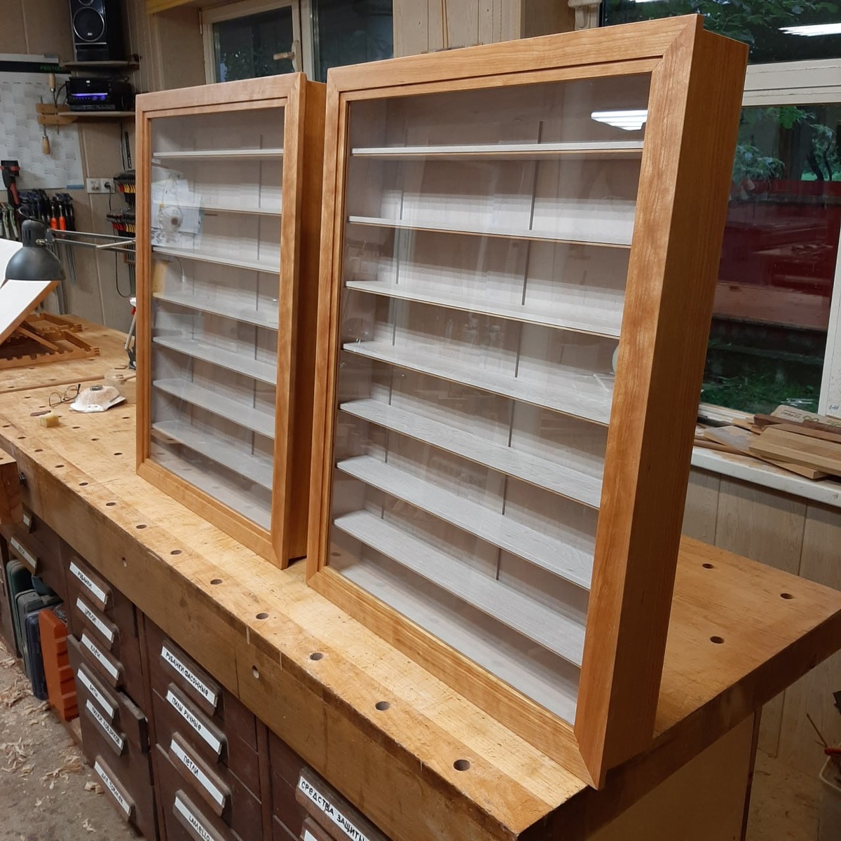 2020 год. Сделал для детей витрины для коллекционирования. Материал - вишня. Внутри, для приглушения фона, покрыл белым малом осмо на один раз. Одинарное покрытие оставляет видимой текстуру, в то же время делает её не такой яркой, оставляя акцент на самой коллекции. Витрина выполнена со стеклянной дверцей, чтобы минимизировать попадание пыли внутрь. Дверца установлена на рояльную петлю. Больше контента в моём Telegram канале , а также канале в MAX. Подпишитесь 🔔 на Дзэн-канал, чтобы не пропустить новый выпуск. Спасибо за внимание и до встречи на канале!