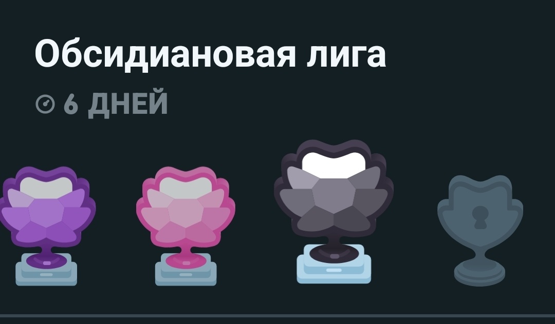 Зато успела много уроков пройти в приложении и даже осталась в обсидиановой лиге, хотя вчера вечером мне грозило поражение, так как я болталась далеко внизу списка.😃