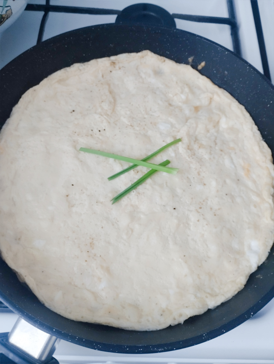 Взбить 5 яиц с кружкой молока, посолить (щепотка соли), добавить 3 ст. л. муки. Мука добавляется для плотности и пышности. Все хорошенько взбить. Вылить на разогретую сковородку, накрыть крышкой и готовится на медленном огне минут 15-20. Готово! Приятного аппетита!