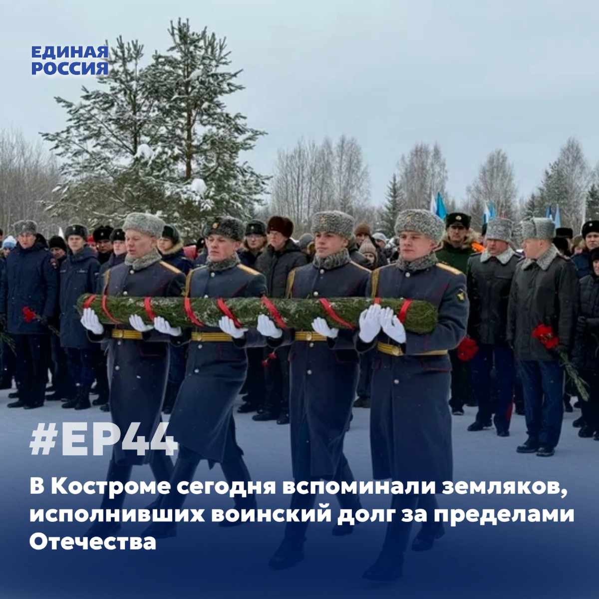 По традиции в этот день костромичи собрались на Аллее Славы городского кладбища. Здесь состоялась лития по погибшим и митинг. Почтить память воинов пришли ветераны и участники боевых действий, родные, друзья и сослуживцы костромичей, отдавших жизнь за защиту государства, военнослужащие, представители органов власти и молодежных организаций, депутаты Костромской областной Думы и Думы города Костромы, члены фракции Единая Россия.