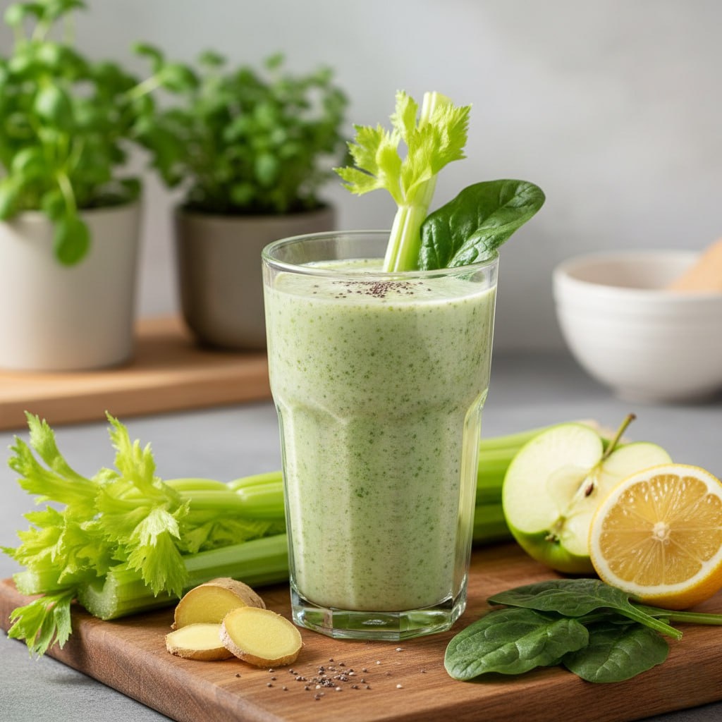 Зелёный детокс-смузи с сельдереем: супер-рецепт низкокалорийного перекуса 🥬🍏 (130 ккал