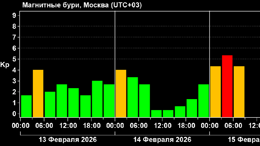 В ночь с 14 на 15 февраля на Земле началась вторая за месяц магнитная буря. Пик пришёлся примерно на 8:00 по омскому времени — уровень достиг G1.3 по пятибалльной шкале. Днём 15 февраля специалисты зафиксировали возмущения магнитного поля на уровне 5,5 балла. По данным Лаборатории солнечной астрономии, причиной стала крупная корональная дыра на Солнце, расположенная напротив Земли. При этом буря началась примерно на сутки раньше прогнозов. Общая продолжительность возмущений может составить до двух суток, однако воздействие будет неравномерным: возможны отдельные всплески и кратковременные бури, которые будут сменяться более спокойными периодами. Выход на уровень выше G2 считается маловероятным. Предыдущая магнитная буря слабого уровня была зарегистрирована 5 февраля. Таким образом, перерыв между событиями составил 10 дней. В целом февраль пока выглядит спокойнее января, который, как ранее сообщалось, стал рекордным за десятилетие по числу дней с магнитными бурями. Тогда основная активн