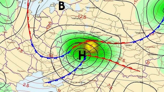 Погода в Центральной России на предстоящей неделе полностью оправдает эту народную поговорку. Барический экспресс Греция – Крым – Вятка, который постоянно курсирует этой зимой по территории России, опять привезёт снегопады и метели. Уже сегодня ночью очередной очень активный и быстрый циклон пойдёт по этому маршруту, пройдя севернее Крыма на Курск, и далее на Казань. Сегодня ночью в Курской и Белгородской областях начнётся сильный снег и метель при ветре 7–12 м/с и температуре воздуха до −4°. По мере прохождения циклона снег перейдёт днём в дождь, а температура поднимется до +4° , а вечером, после прекращения дождя, температура в Курске упадёт до −8…−10°. Сложно сказать, сколько снега выпадет, а сколько растает, но суточное количество осадков в Курской, Липецкой, Орловской, Рязанской и других областях по траектории движения этого злого вихря легко достигнет 30 мм, что в среднем окажется более 2/3 месячной нормы осадков.Во второй половине понедельника центр циклона окажется на севере Т