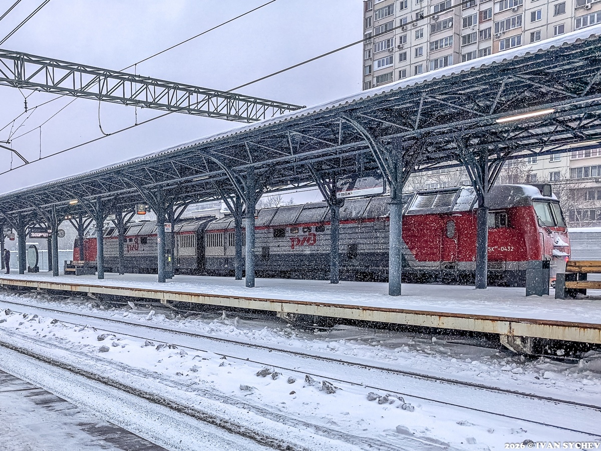 В этом обзоре – три дня подряд. Причем все три дня шел снег, снежок, чуть порошило и, даже, снег валил. То есть, вы уже поняли – три дня именно в тот момент, когда я мог что-то сфотографировать на железной дороге так или иначе были связаны со снегом. Не скажу, что для человека, стоящего на морозце (а в эти дни выше минус десяти не поднималось) это вот очень приятно, но, порой, оно того стоит. 1. Например, если бы я как и все, грелся бы в закрытом входе в подземный переходе станции Реутово, я бы благополучно бы пропустил идущий резервом тепловоз 2ТЭ25Км-0432, его и так-то еле видно за снегопадом, который в прогнозе обозвали «ливневый снег». 2. А вот тут, совершенно любопытно и непреднамеренно. Я «провожал» телефоном тепловоз и в кадр попал электропоезд ЭД4М. И существо, которое разумным назвать сложно – зацепер. В мороз! В снегопад! Вот действительно, есть сложности с логикой и знаниями простой школьной программы – математики и физики. Любопытно, а где же доблестная РЖД-охрана (или как