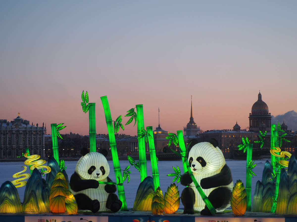 Китайский новый год по лунному календарю отмечают 15 дней. В этом году отмечать его будут с 17 февраля по 03 марта. В Санкт-Петербурге к этому событию приурочили ряд мероприятий и украсили город. Одним из таких мероприятий станет Фестиваль китайских фонарей провинции Сычуань «Счастливый праздник Весны». На стрелке Заячьего города у Петропавловской крепости установят 10 световых композиций, исполненных китайскими мастерами из города Цзыгун в провинции Сычуань, известного своей тысячелетней историей изготовления световых инсталляций. Я побывала на Заячьем острове за пару дней до открытия фестиваля, чтобы посмотреть на данные инсталляции. 2026 год - год лошади по лунному календарю. Лошадь - традиционный китайский символ удачи. Она воплощает пожелание "успеха приходящего вместе с лошадью" и "духа дракона лошади", а также символизирует "благополучие и смелость" при движении к цели. Лошадь в инсталляции украшена традиционными узорами, символизирующими удачу. Китайский дракон Дракон - симв