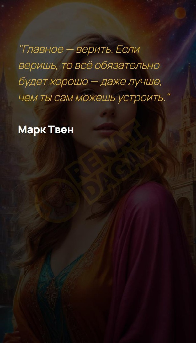 Если веришь, то всё обязательно будет хорошо... "Главное — верить. Если веришь, то всё обязательно будет хорошо — даже лучше, чем ты сам можешь устроить." Марк Твен Матрица судьбы | Архитектура вашей души T | VK | Pin | YouTub | Dzen #опыт #единстводуши #надежда #мудрость #твояреальность #впотоке #психологияженщины #впотоке #силамысли #15число #15февраля