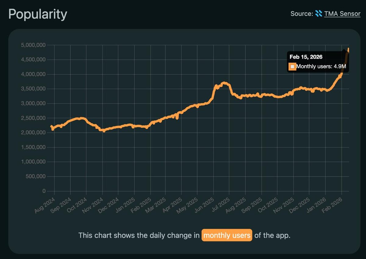 0M. И х2+ за год. А все потому, что Телеграм реально удобен как интерфейс для агентов, без всяких рисков бана. Прогать голосовухами с мобилы — незабываемо. Сам тг это поддерживает и добавляет потенциально полезные фичи. А еще заметил, что после 6 января число скачиваний либы python-telegram-bot упало в 8 раз, а grammY (js) наоборот выросло в ~10 раз. aiogram подрос x2.