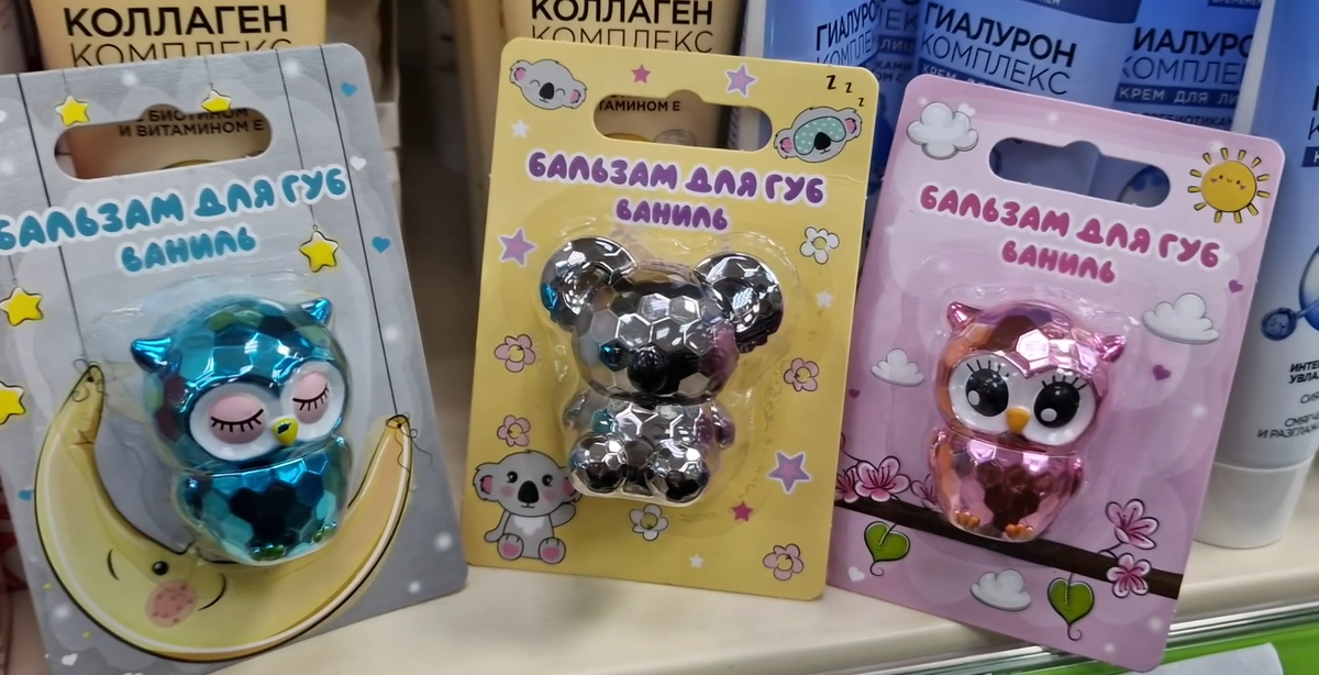 Бальзам для губ, оригинальная необычная упаковка, все с ароматом ванили. Цена 190 рублей.