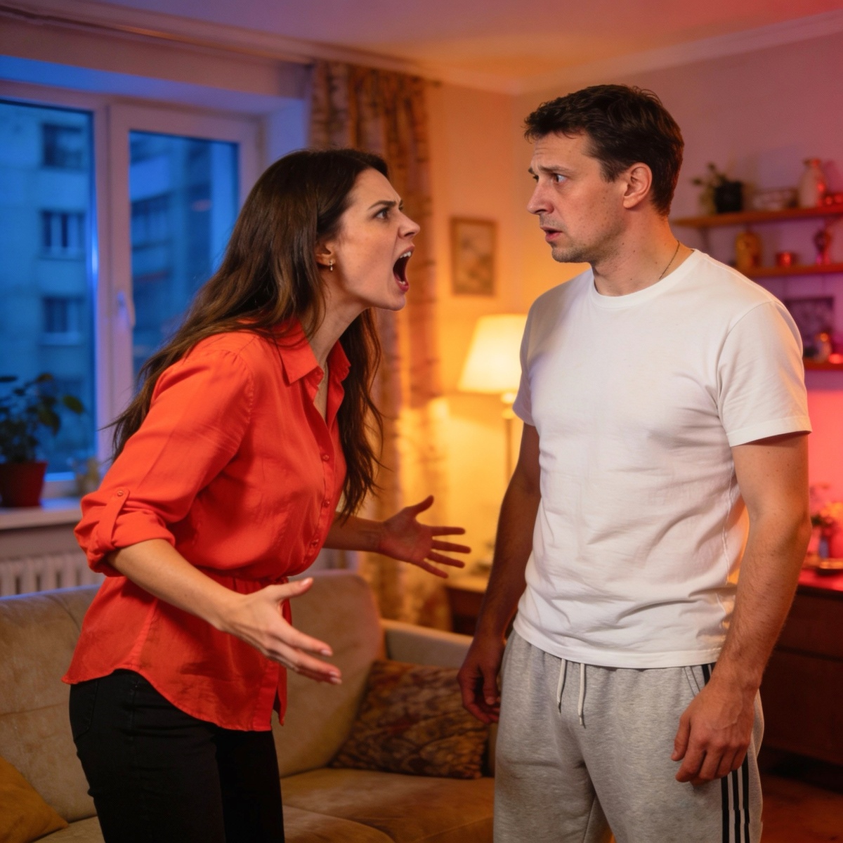 Настя стояла посреди кухни в пальто — она ещё не успела его снять — и смотрела на мужа. Что-то внутри происходило странное: не привычная горячая волна обиды. Что-то холодное и очень чёткое — как будто у неё перед глазами появилась картинка, и она наконец увидела её целиком, со всеми деталями, которые раньше не складывались вместе.