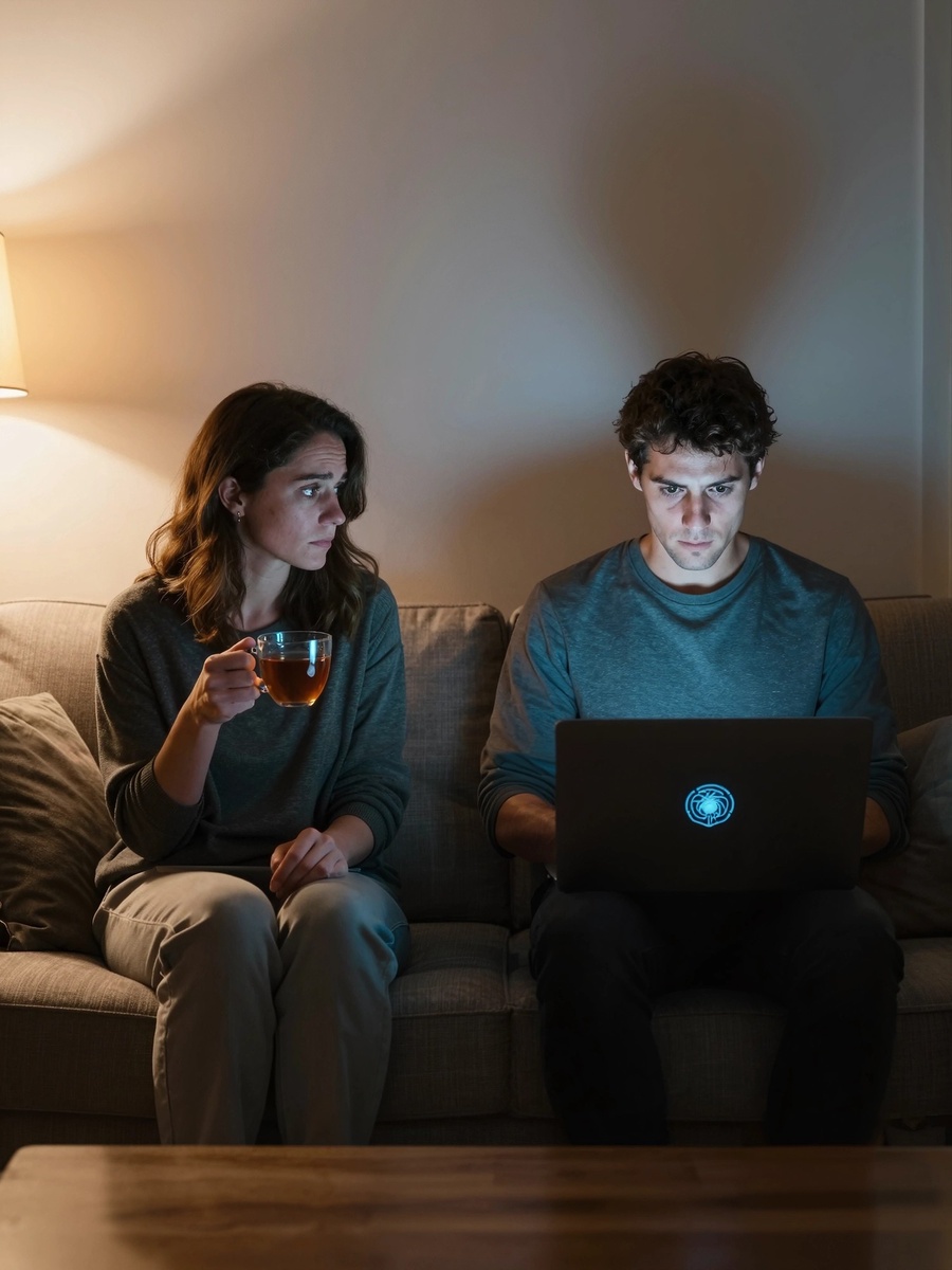 Сначала муж просто стал чаще задерживаться в кабинете. «Работа», — коротко бросал он, когда Анна заглядывала в дверь с чашкой чая. Потом появились наушники — даже когда он сидел за компьютером один. Потом — лёгкое раздражение, если она отвлекала его от «важного».