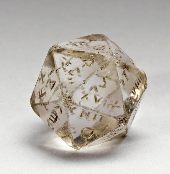 ✨ Этот прозрачный многогранник представляет собой инструмент для предсказаний примерно 2000-летней давности, используемый римлянами. В отличие от костей из слоновой кости, распространенных тогда в повседневной жизни, этот предмет вырезан из горного хрусталя (кварца). В Сортах Астрампсих (Sortes Astrampsychi), популярной книге гаданий того периода, они находили ответы, которые соответствуют выпавшему числу. А вопросы все те же: "Моя жена мне изменяет?", "Смогу ли я выплатить свой долг?" ", "Меня поймают на воровстве? ", или "Получу ли я наследство? " Римская империя, 2–3 век н.э. Горный хрусталь. Музей Лувра, Париж.