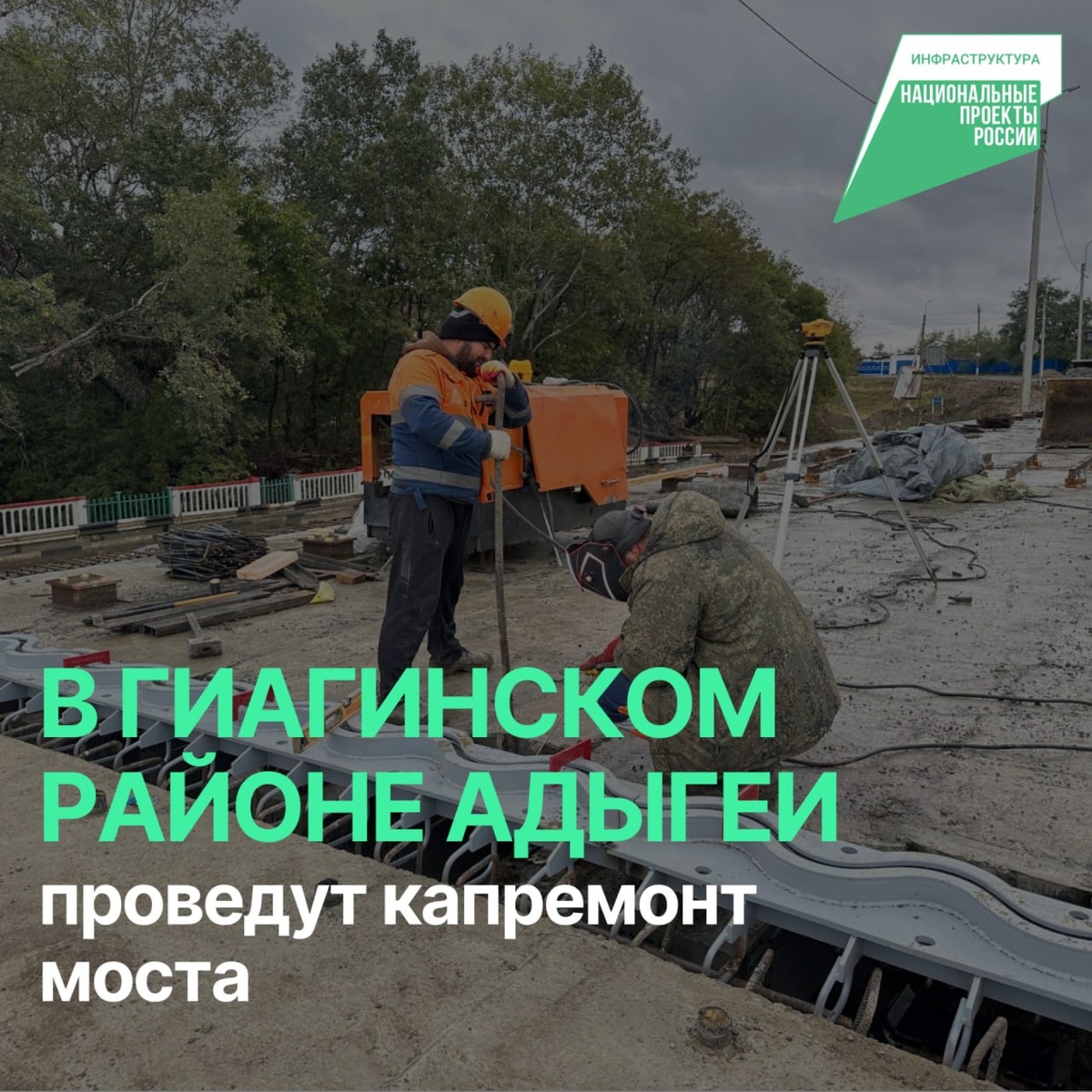 – Гиагинская – Дружба. Работы будут выполнены благодаря реализации национального проекта «Инфраструктура для жизни», направленного на модернизацию транспортной инфраструктуры и повышение качества жизни граждан. Мост был построен в 1970-х годах и за десятилетия эксплуатации подвергся значительному износу. Проведённая инструментальная диагностика показала необходимость проведения капитального ремонта. «В рамках контракта подрядной организацией будет выполнен комплекс строительно-монтажных мероприятий. На первом этапе специалисты обустроят временный технологический проезд, что позволит обеспечить непрерывность транспортного сообщения на период проведения работ. Далее будут произведены следующие виды работ: демонтаж существующего сооружения, буровые работы для устройства новых опорных конструкций и монолитных фундаментов, монтаж балок пролётных строений, установка ригелей и системы водоотведения. На завершающем этапе дорожные строители выполнят устройство асфальтобетонного покрытия, обус