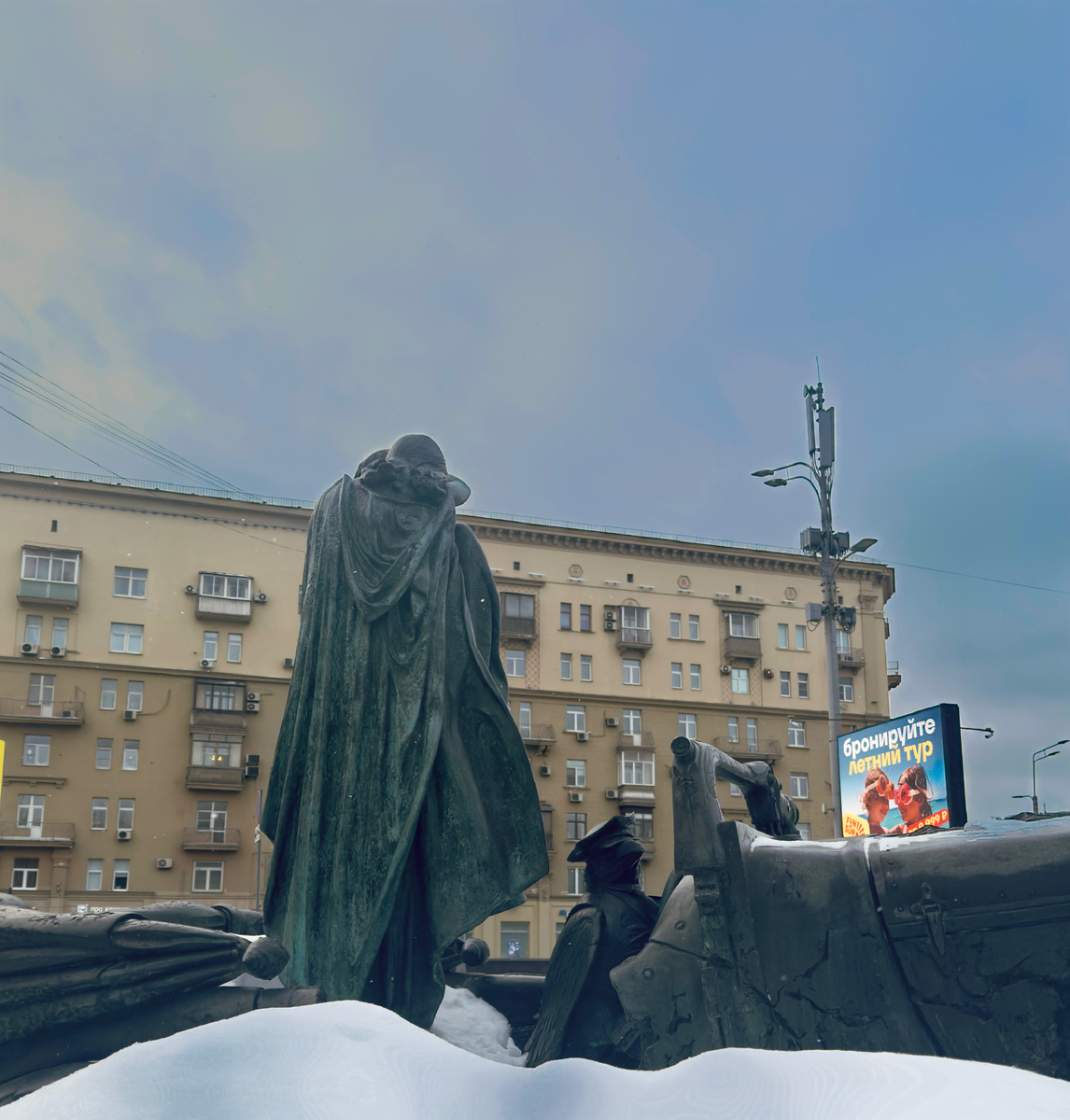 И конечно памятник с Мастером и Маргаритой. Они стоят в машине, за ее рулем грач. Сейчас всё в снегу и в этот момент не было включено подсветки в сквере, но выглядит даже так - мощно!