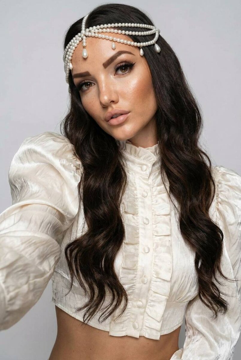 🤭 Самочувствие бее . Не теряйте меня 🫶 Вижу в нашем ЧАТИКЕ тыщааа сообщений , чуть позже перечитаю вас 😉 Промпт : Ultra-realistic photo of the exact same woman from the reference image. 100% facial likeness. Preserve original face identity. Do not change face structure. Facial identity preservation is the highest priority. High-fashion studio beauty editorial with soft luxury bridal-glam mood, clean neutral color grading, medium contrast with smooth tonal transitions, luminous skin highlights and refined modern polish without over-softening. Minimal indoor studio environment with smooth light gray background and subtle tonal gradient, no visible props, clean contemporary setting with controlled lighting. Medium close-up framing from slightly above chest level, camera positioned at slight high angle as if handheld selfie perspective, subject centered and leaning subtly forward toward the lens. Head tilted gently to one side, chin slightly lowered, direct gaze into camera with confid