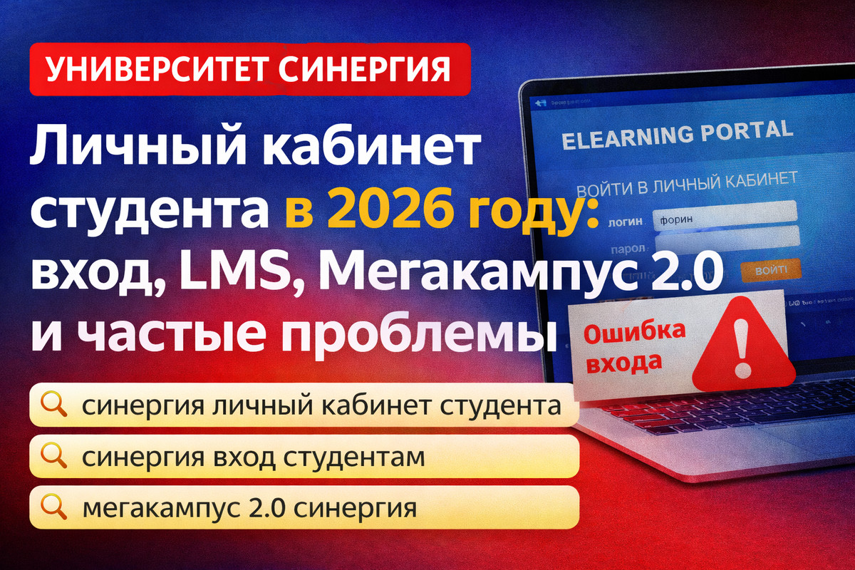 Проблема в том, что система кажется простой только на первый взгляд. На практике у студентов регулярно возникают вопросы: куда именно заходить, почему не открывается нужный раздел, чем отличается LMS от Мегакампуса 2.0, что делать, если не получается войти в личный кабинет или пропал доступ. В этой статье я собрал все самое важное о личном кабинете студента Синергии в 2026 году простым и понятным языком.