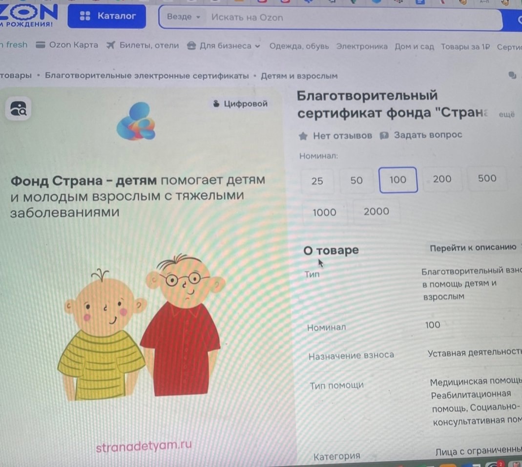 А между прочим, только за последние три месяца 568 человек приобрели благотворительные сертификаты фонда в Озон на сумму 51 472 рубля