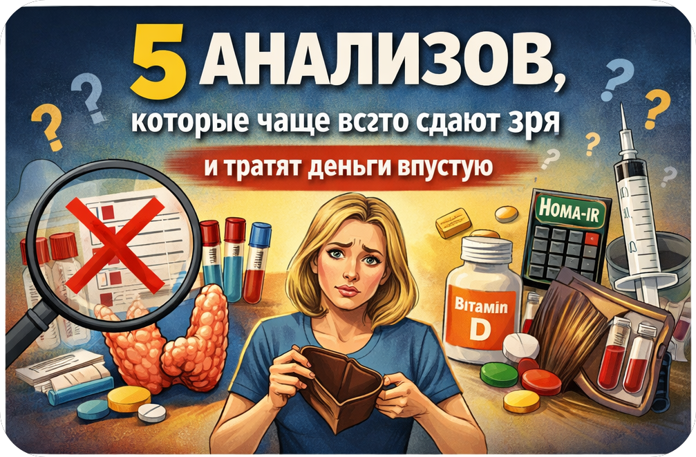 Сдать побольше анализов — вдруг что-то найдут. Но реальность разочаровывает: большая часть таких обследований либо ничего не меняет, либо создаёт ложную тревогу, либо становится источником бессмысленных повторных тестов. Разбираем 5 самых популярных анализов, которые чаще всего назначаются без показаний. Такого анализа не существует. Под этим обычно понимают: Если человек здоров и жалоб нет, то вероятность случайного «отклонения» очень высокая. В любой панели из 20–30 показателей что-то обязательно выйдет за референс, даже у полностью здорового человека.