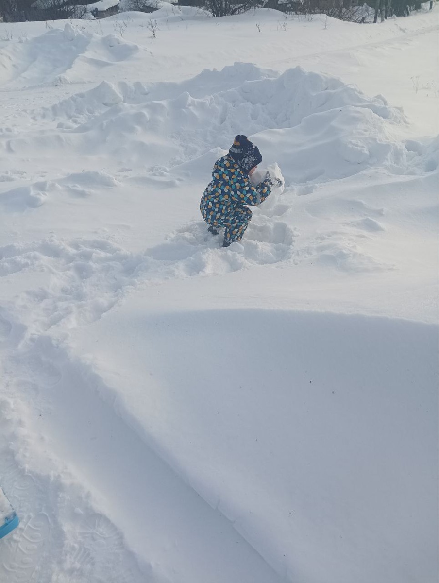 Сегодня очень много гуляли. Сын вдоволь полазил по сугробам.