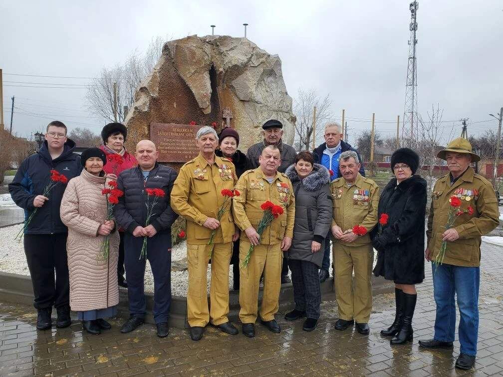 Ветераны боевых действий и молодежь собрались у памятного знака в станице Калитвенской