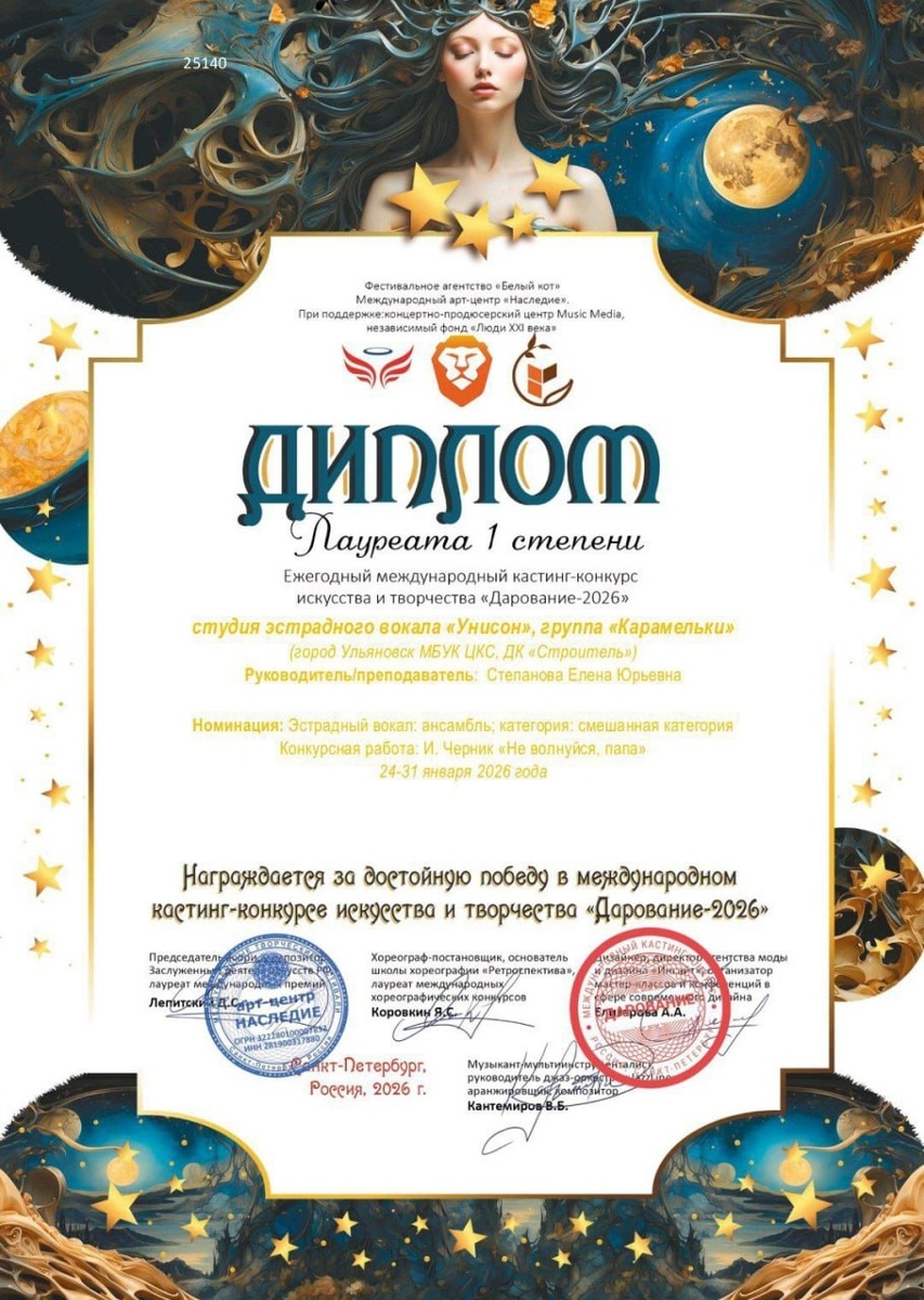 Студия эстрадного вокала «Унисон» из Ульяновска приняла участие в Международном конкурсе «Дарование-2026