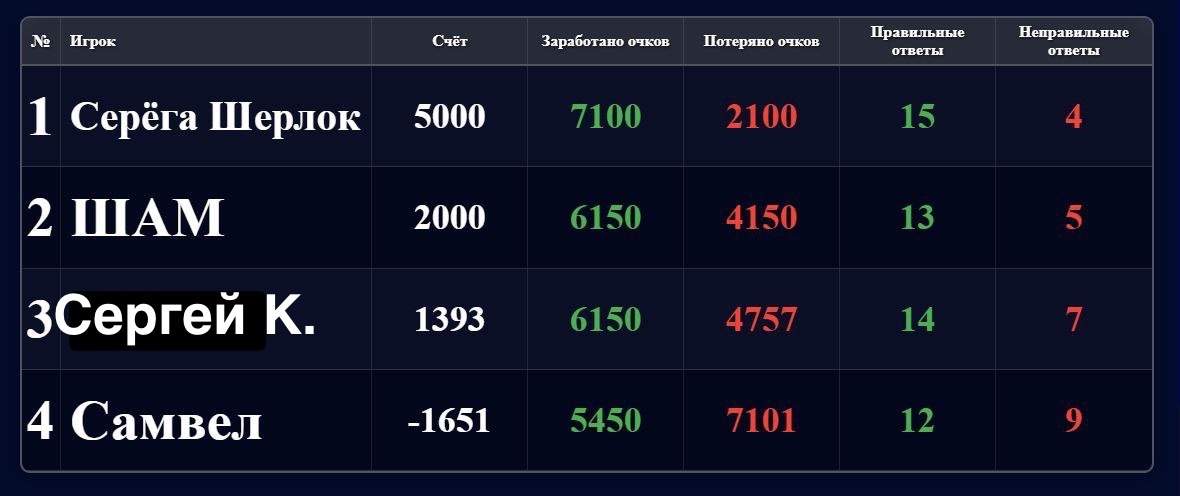 🥇- Шерлок (Московская область), 5000