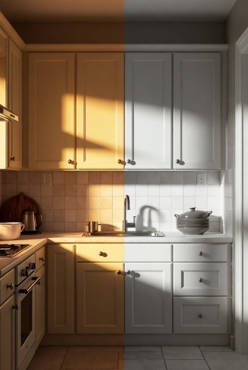 - Ошибка 1: Игнорирование освещения. Вы выбрали цвет кухни палитра цветов в магазине при ярких лампах, а дома он оказался серым и унылым. Выход: всегда проверяйте образцы при естественном свете.