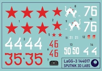 Sputnik 3DLabs показали макет декали на 6 вариантов окраски ЛаГГ-3 самых первых серий в 1/144 масштабе
