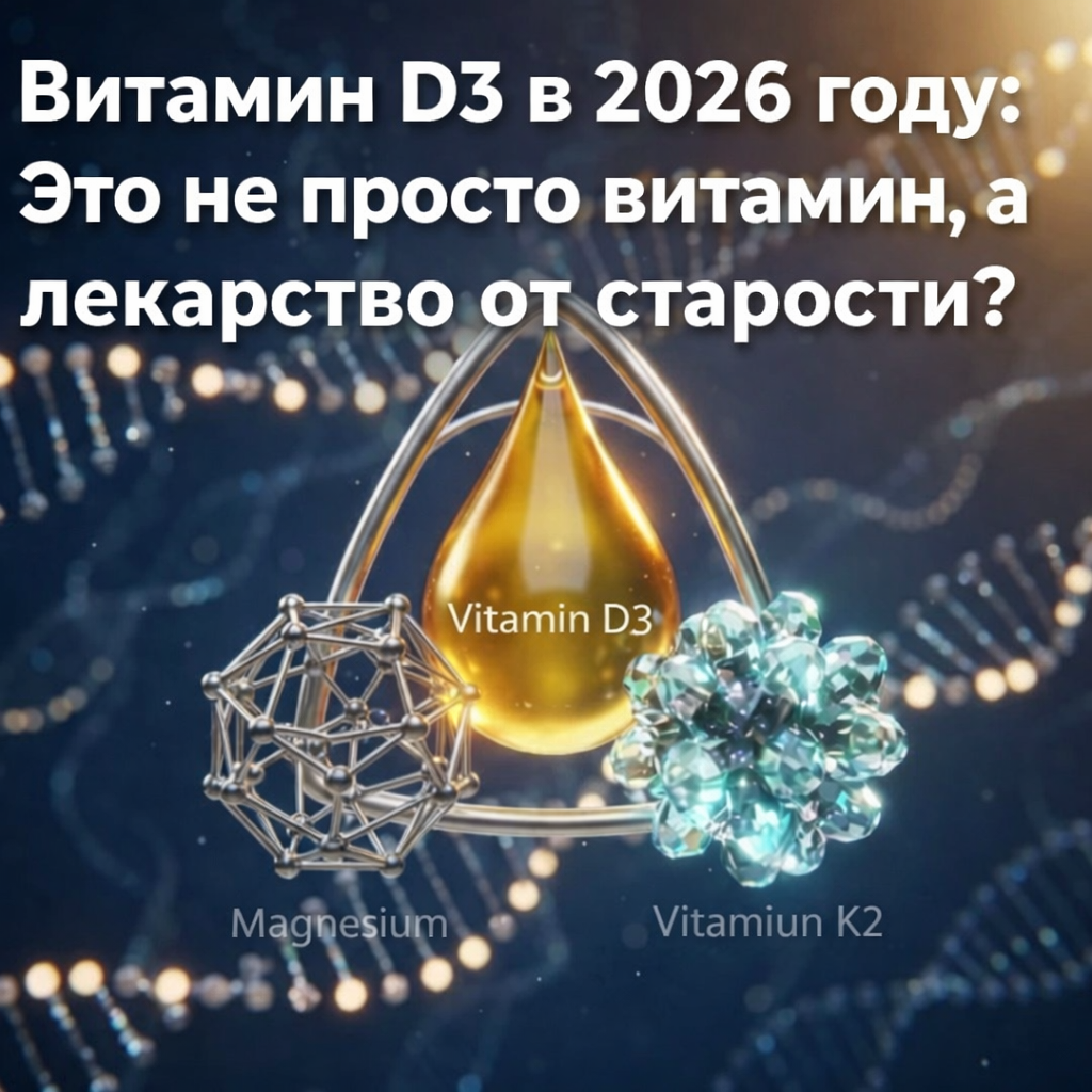 Приветствую! Если вы думаете, что про витамин D уже всё сказано — забудьте. За последние два года (2024–2026) наука совершила настоящий разворот. Мы перестали смотреть на D3 просто как на средство от рахита у детей. Сегодня я, разберу для вас сухие факты из свежих медицинских отчетов: почему в США и России разные дозировки, как витамин D3 связан с длиной нашей жизни (буквально!) и почему пить его «соло» — это часто деньги на ветер. Самая громкая новость пришла в мае 2025 года. Завершился субанализ масштабного исследования VITAL. Ученые годами наблюдали за тысячами людей, принимавших 2000 МЕ витамина D3. Что искали? Длину теломер. Это такие «защитные колпачки» на концах наших хромосом. Чем они короче, тем старее наши клетки и тем выше риск возрастных болезней.