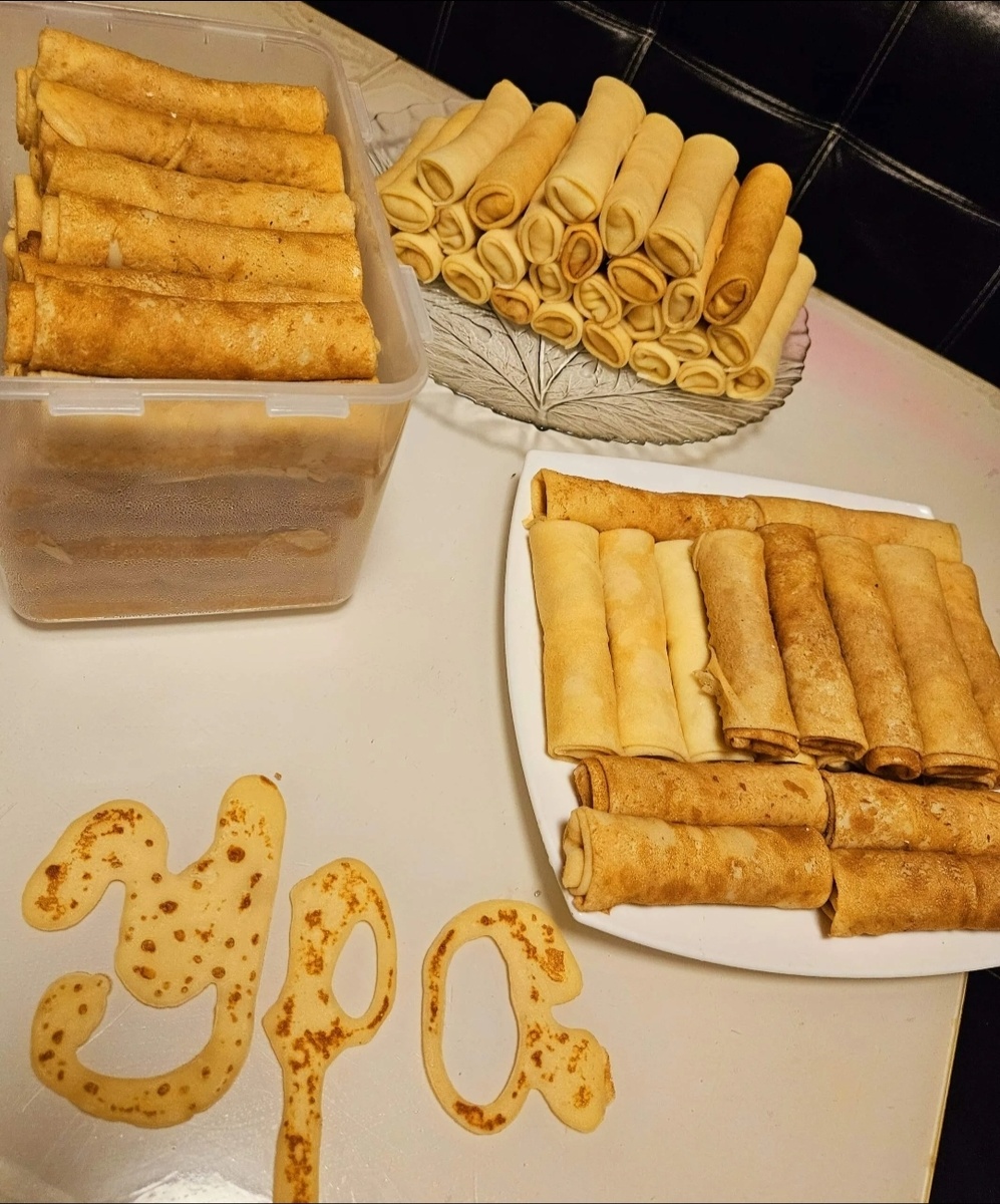 12. Готовые заварные блинчики подаем к столу теплыми, или даже горячими.