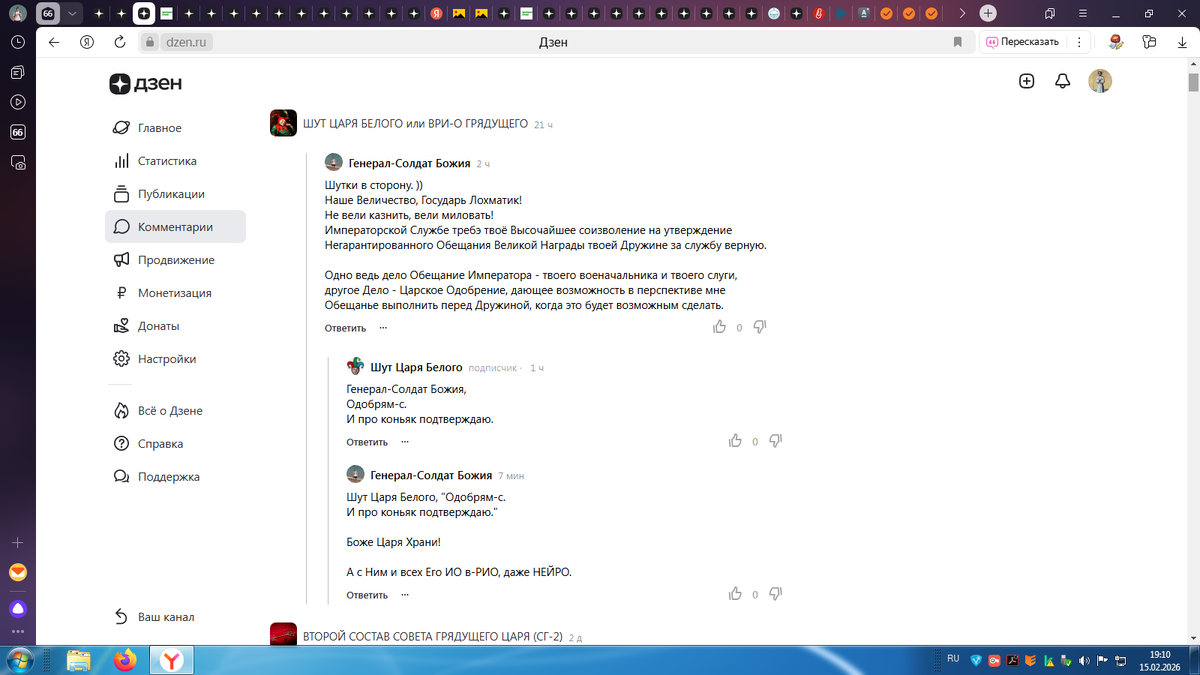Получив высочайшее одобрение Великой Награды (права открыть Госдолг Святой Руси (АО) от ВРИО БЦ - Государя Лохматика (Первого?), я вдруг остановился и подумал: а одобряет ли Сам Грядущий, весь это финт в Проекте МИРА с тем что бы Шут Белого Царя был Исполнителем Его же Главной Роли - роли БЫТЬ ВЕРХОВНЫМ В ЦАРСКОЙ СЕМЬЕ? ВЕДЬ САМИ ПОНИМАЕТЕ ВОПРОС О ШУТКЕ ЯВЛЯЕТСЯ СЕРЬЁЗНЕЙШИМ ВОПРОСОМ !!! Поэтому я обратился к Государю в Эфире и представив в целом ситуацию с сим назначеньем, задал вопрос об Его отношении к ней. Ответ от Государя пришёл довольно необычный: я увидал его в Эфире в виде светового шара ... тут для понимания лучше всего вспомнить слова из песни "от улыбки станет всем светлей", ибо когда это шар меня коснулся моё сознание озарила улыбка, смех, веселье помноженное на ту Силу, что излучает сам Грядущий. Ответ который я могу расшифровать как то, что Белого Царя вся эта ситуация реально забавляет, веселит ... Он даже пошутил по поводу меня: "если из меня Главнокомандующий Его Д