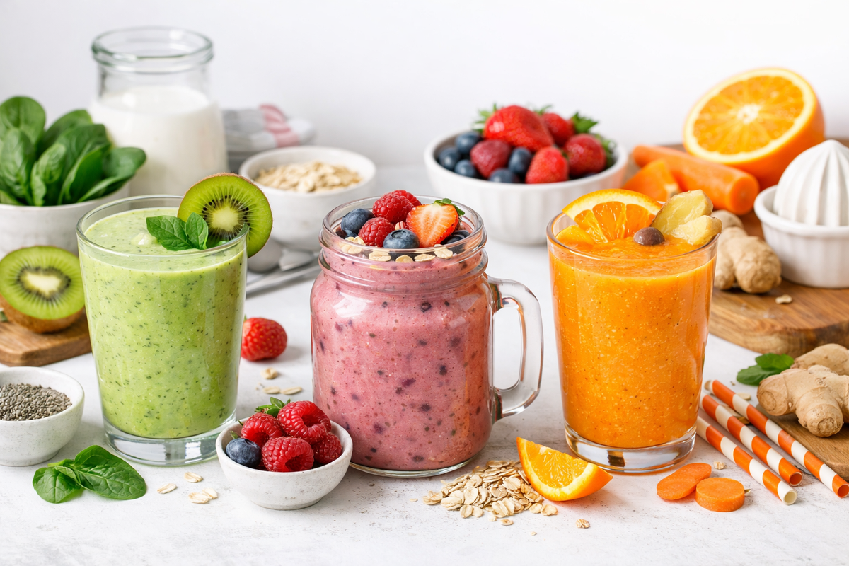 Я заметила странную вещь - большинство “полезных” смузи быстро надоедают: то приторно, то пусто, то после них через час снова голодно. Поэтому я собрала 3 варианта на каждый день: один свежий и зелёный, один “как десерт”, и один бодрый цитрусовый. Делается за 3-5 минут, выглядит красиво в стакане, и без редких ингредиентов.