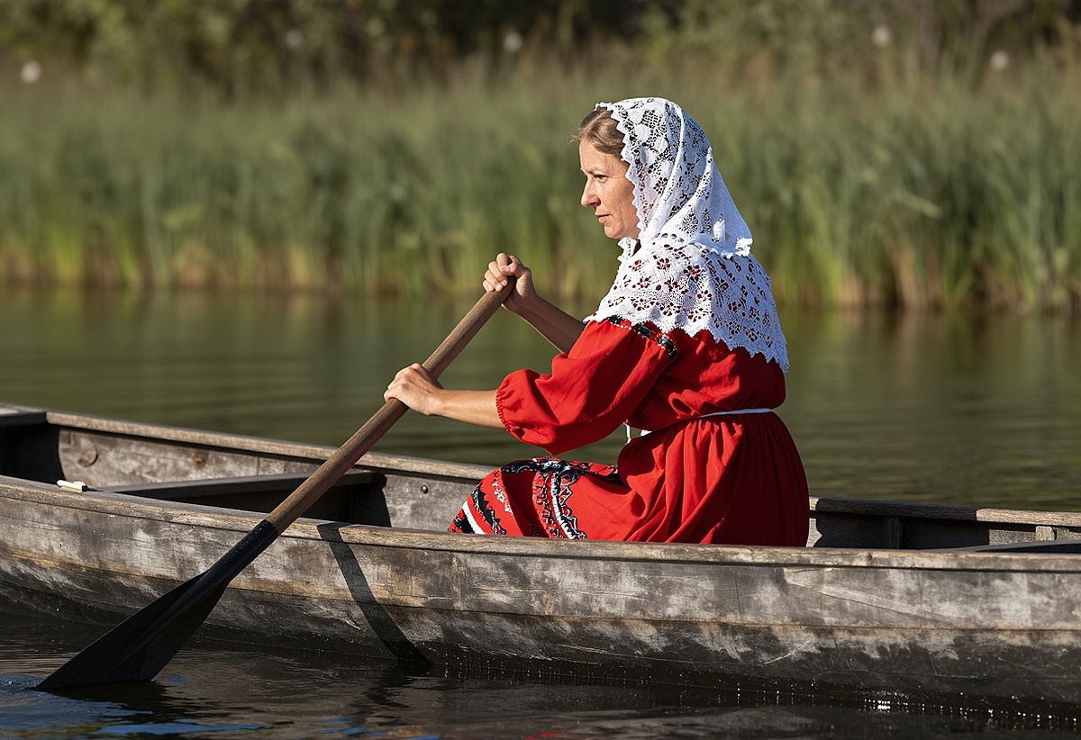 удержаться. Гребла женщина — в ярком сарафане, кружевной кофте, и, что