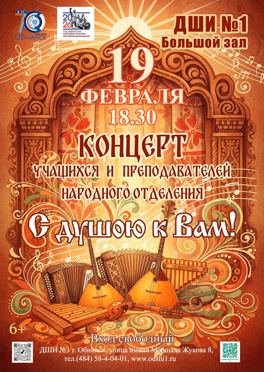 🎶19 февраля в 18:30 в ДШИ №1 состоится концерт народного отделения «С душою к вам
