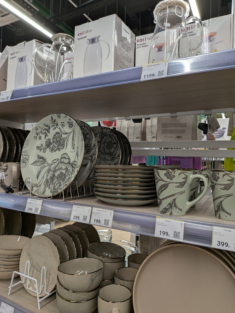 Я тот самый человек, который может потратить ползарплаты на посуду, хотя дома ее уже столько, что она еле помещается в шкаф. Думаю, у каждого есть такие слабости, но в целом я чаще просто любуюсь, отмечаю то, что нравится, но не покупаю ничего толком. И в "Кари" мне понравились некоторые коллекции - если бы я не видела, что у них же кружки да тарелки в другом стиле уже продают по акции за 99, я бы, может, и купила что-то, а так предпочла подождать.