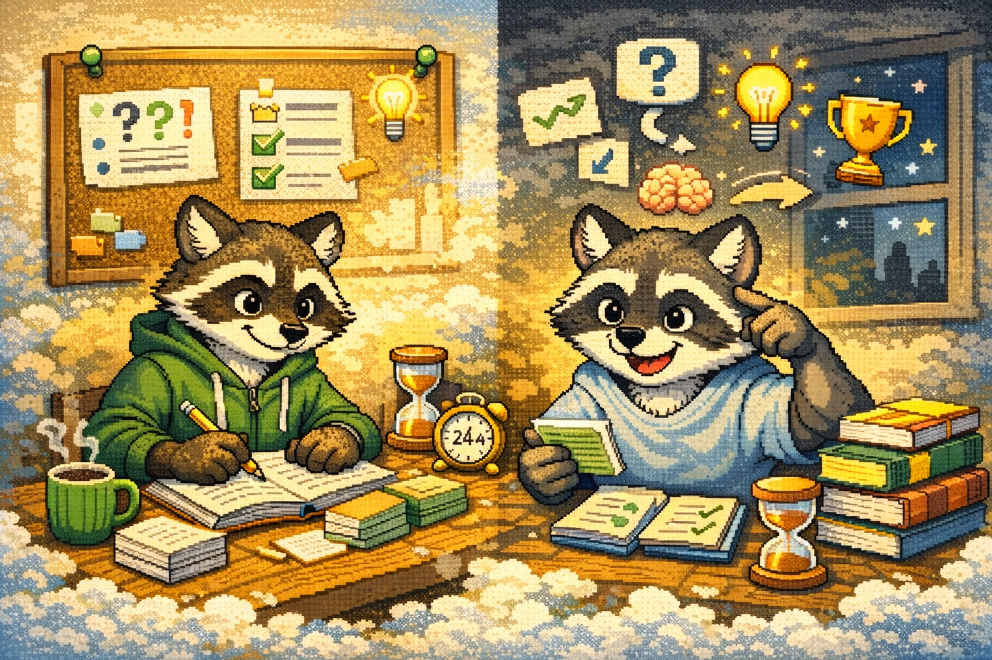 Большинство студентов считает, что конспект — это финальная точка. Записал, закрыл тетрадь — галочка поставлена. Но запись — это только старт. Вопрос не в том, как писать, а в том, что делать дальше и когда. Ошибка «записал и забыл» Если конспект открывается снова только перед экзаменом, то почти вся его сила теряется. Память ослабевает быстро. Особенно если материал не был переработан, не был извлечён, не был проверен. Заметки не должны лежать в архиве. Они должны быть встроены в расписание. Первый этап — быстрая переработка Переработка — это ближайшее действие после записи. Не переписать красиво. А уточнить непонятное, упростить сложные формулировки, выделить главное, добавить вопросы. Этот этап укрепляет понимание. Если его пропустить, можно закрепить поверхностное или искажённое представление. Переработка — это «осмыслить», а не «оформить». Второй этап — переход к тренировке Вот здесь начинается реальное обучение. Если заметки используются только для чтения, то мозг тренирует узнав