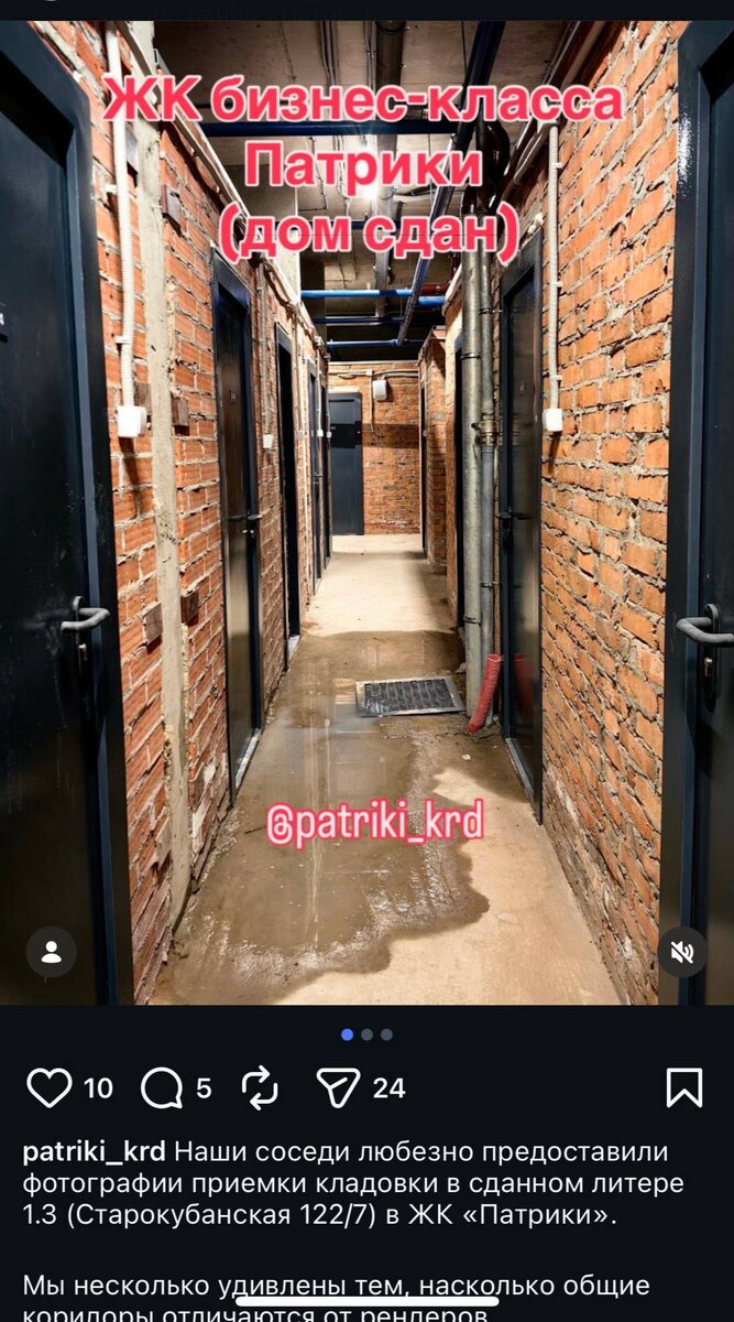 Я, если честно, сначала не понял, а потом как понял. Такие кладовые я, конечно, видел, в доме моего дедушки. Дохрущевские еще, но не помпезные огромные «сталинки», а знаете такие двух-трехэтажные дома малоквартирные, почти таунхаусы. Они есть в каждом городе европейской части России, по слухам их пленные немцы строили, но это большей частью легенды. Вот там в подвале тоже были такие кладовые. Напомню, ЖК Патрики позиционируются как бизнес-класс. Я чекнул группу дольщиков в тг, там разгул претензий к качеству, но объективно ничего особенно страшного в отделке я не нашел. Там стандартно-дерьмовая современная отделка. Но вот кладовки это ужас реально. Как-то лишний раз спускаться за соленьями даже в такую не захочется. Или постойте, в бизнес-классе же соленья не хранят в кладовках, там должны быть золотые слитки или что?
