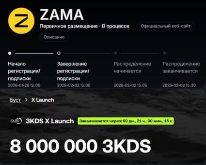 📈Mexc запустил новый Launchpad на 750 000 $ZAMA ✅ Рег(имеем) аккаунт ✅Регаемся сюда ✅ Деп 100 USDT + ✅ Торгуем на споте 100$+ ✅ Крутим в любой паре на фьючах 20к+ Детали(жми чтобы открыть)👇 1️⃣Новые акки: 🔵Цена = 0,03 $USDT 🔵Пул — 500 000 $ZAMA делится на всех. 🔵Лимит— 5000 $USDT 2️⃣Старые акки: 🔵Цена = 0,04 $USDT 🔵Пул — 250 000 $ZAMA делится на всех. 🔵Лимит — 5000 $USDT ⚠️Так как пул делится на всех стоит смотреть под конец по количеству участников и решать делать или нет👌 🔔 Дедлайн до 02 февраля 15:00, Выдача аллоки в 15:05 〰️〰️〰️〰️ ⚫️Новый дроп на Launch X - тык.Критерии - 200 деп и 500 оборот.Будет допом к 135$ с SPACE. Как кручу писал здесь👈,сейчас 1,27х дает COAI . 👉 Прокси беру на proxyline промо AllWin 💎Квартире через Крипту | Все для Абуза