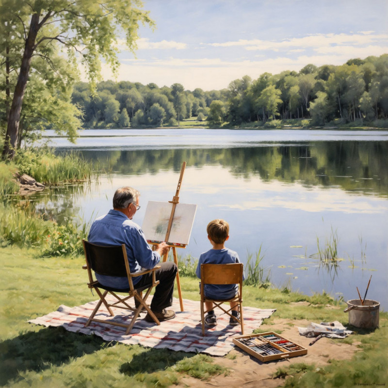 Лето для Лёхи всегда было синонимом свободы и приключений. Обычно, когда день выдавался солнечным, он с корзинкой отправлялся в ближайший лес за ягодами или грибами. Однажды, когда солнце начинало припекать, телефонный звонок нарушил его привычный утренний покой. Звонил дядя Коля, брат мамы. Он приглашал в гости. И в этот же день на электричке Лёха благополучно добрался до посёлка. Дядя Коля был свободным художником и жил в одноэтажном доме в центре посёлка, где время, казалось, замедлило свой ход. В его доме пахло скипидаром и художественными красками. На стенах висели портреты, натюрморты, написанные им. Больше всего дядя Коля любил рисовать природу: дремлющий лес, ромашковое поле, пруд. После завтрака дядя задумчиво посмотрел в окно и, словно обращаясь к самому себе, произнёс: «Сегодня буду писать лесной пейзаж у пруда». Лёха тут же оживился и с надеждой спросил: «А я тоже буду?» — и сразу представил, как он будет рисовать дерево, тучи, пруд. «Да! Если хочешь», — добродушно ответил