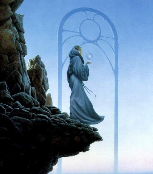 А потом из тьмы вышла светящаяся светло-лиловая женщина. Стройная и длинноволосая. Лицо сияло столь ярко, что его невозможно было разглядеть. В руках незнакомка держала хрустальный кувшин. Она опустила его в Реку, и странник влился внутрь.