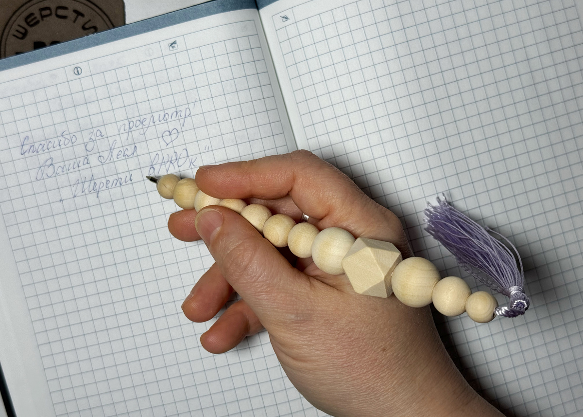 Я зашла на маркетплейс и, пролистав буквально пару карточек, увидела набор деревянных бусин в кейсе за 123 рубля. В нем 434 бусины разного диаметра. А на одну ручку, к слову, я использовала всего 12 шт.