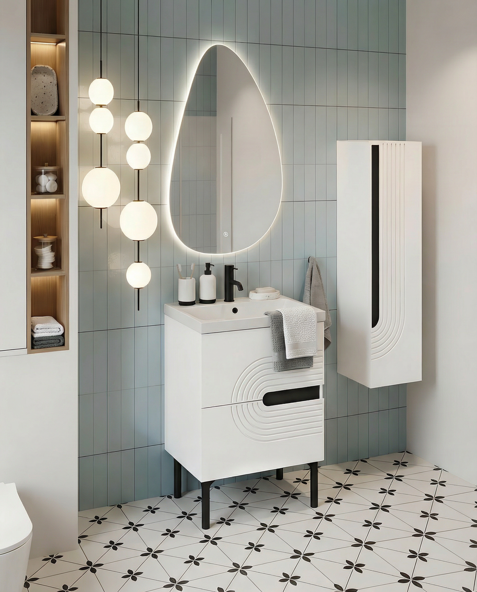 Один из главных элементов этого пространства — тумба под шкафом . Именно о ней и поговорим: какие бывают пузики, чем они отличаются, и на что действительно стоит обратить внимание при выборе. Первый и самый важный шаг — точные замеры . Тумбы под умывальник выпускаются в самых разных размерах: 500, 550, 750 мм и даже компактные мини-варианты для совсем маленьких санузлов. Если пространство ограничено, не стоит отказываться от пупка совсем. Даже маленькая модель способна вместить всё необходимое и визуально упорядочить пространство.