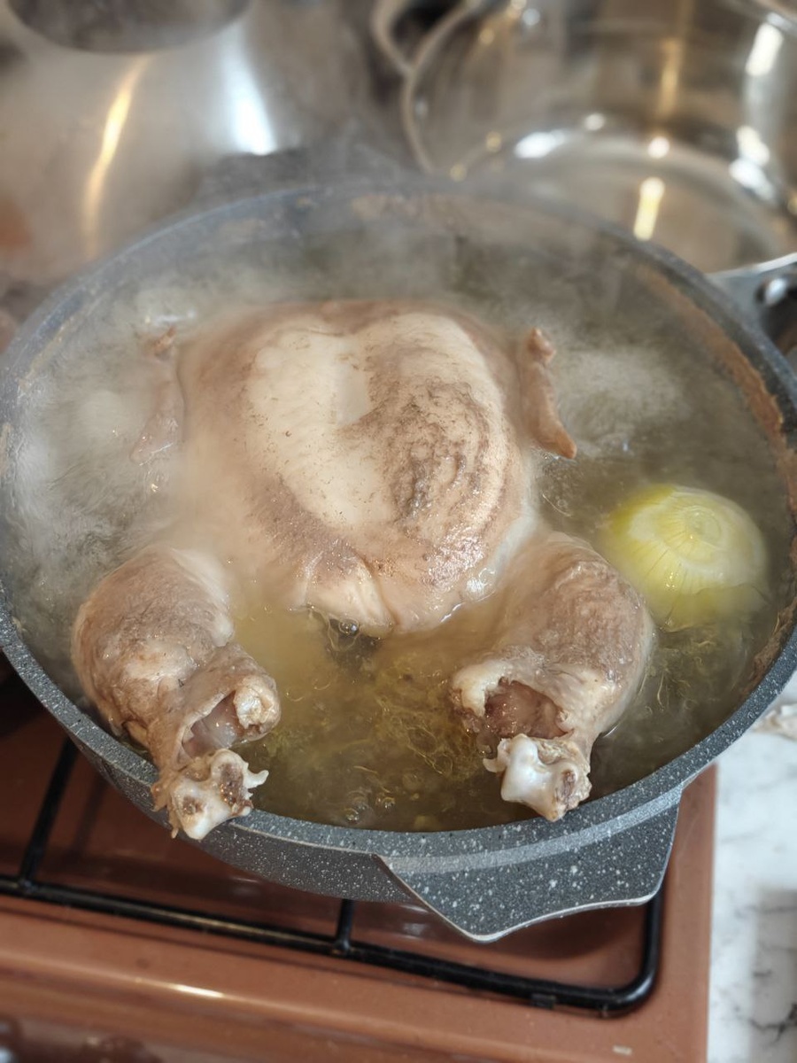 Это здоровый, сытный вариант на 8 порций. Я адаптировал его под принципы рационального питания, вы можете добавить любых овощей. Готовим! Ингредиенты: - 1 целая курица (2 кг) - 4 средних картофелины (800 г) - 3 средних батата (600 г) - 2 большие луковицы (300 г) - 4 зубчика чеснока (20 г) - 4 моркови (400 г) - 4 стебля сельдерея (200 г) - 2 ст. л. оливкового масла (30 г) - Соль, перец, лавровый лист, тимьян по вкусу - 3 л воды Подготовка обжарки (зажарки): Разогрейте оливковое масло в большой кастрюле на среднем огне. Нарежьте лук, чеснок, морковь и сельдерей мелкими кубиками. Обжарьте лук и чеснок 2-3 минуты до прозрачности, затем добавьте морковь и сельдерей. Жарьте ещё 5-7 минут, помешивая, до мягкости. Это добавит аромата супу! Варка бульона: Промойте курицу, положите в кастрюлю. Залейте водой, чтобы покрыть курицу. Добавьте соль, перец, лавровый лист и тимьян, луковицу. Доведите до кипения, снимите пену, уменьшите огонь и варите под крышкой 1 час, пока курица не станет мягкой