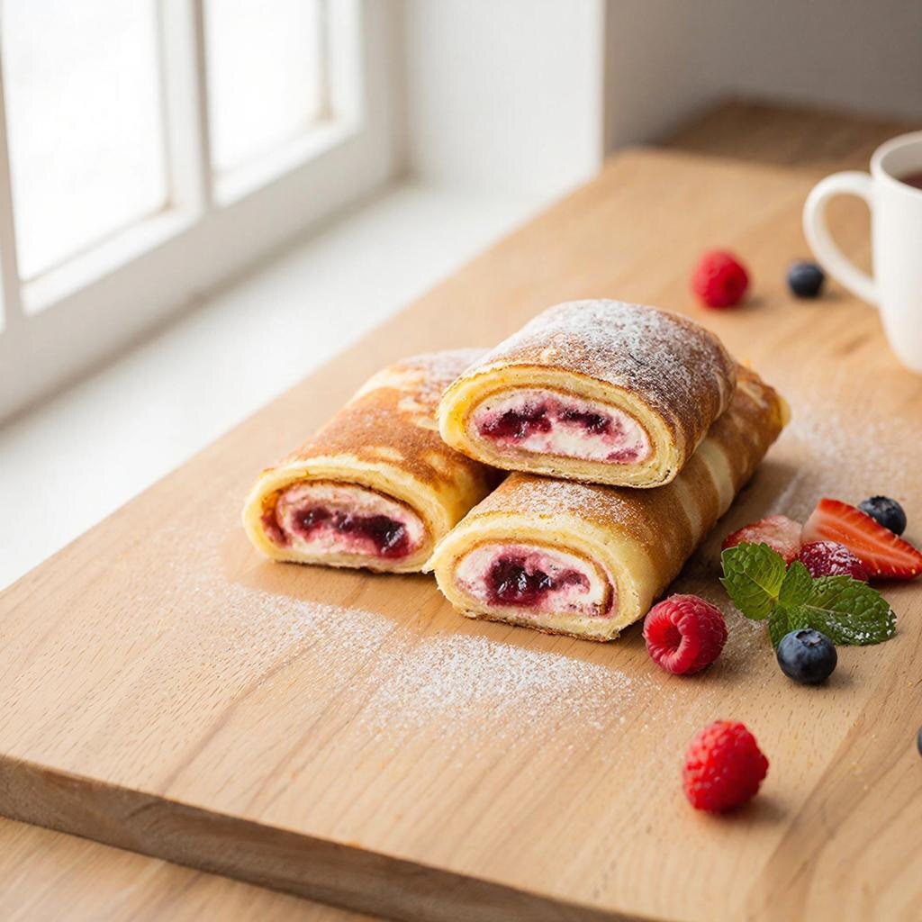 Финский блин — это не просто десерт. Это целая философия. Минимум усилий, максимум результата. Тесто получается нежным, слегка плотноватым, идеально держит форму рулета и пропитывается начинкой так, что каждый кусочек тает во рту. А главное — никаких танцев с лопаткой и переворачиванием. Всё делает духовка.