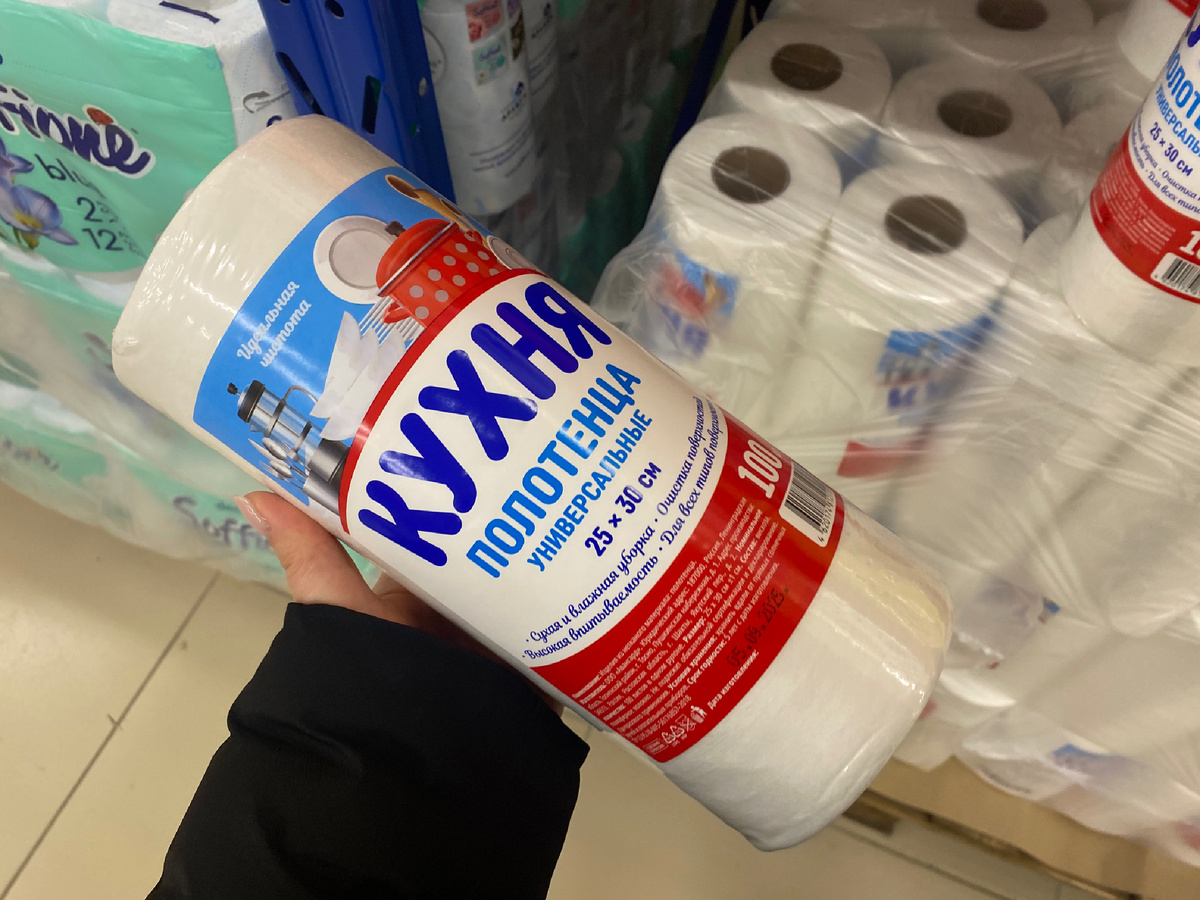 Приглянулись вот эти кухонные полотенца. Все ждала, когда свои дома закончатся. Сегодня этот день наступил. И вообще многое из бытовой химии нужно прикупить. Полотенца в рулоне. Они размером 25х30 см. Подходят для сухой и влажной уборки. У них хорошая впитываемость. Подходит для всех видов поверхностей. В рулоне 100 штук. Цена 221 рубль.