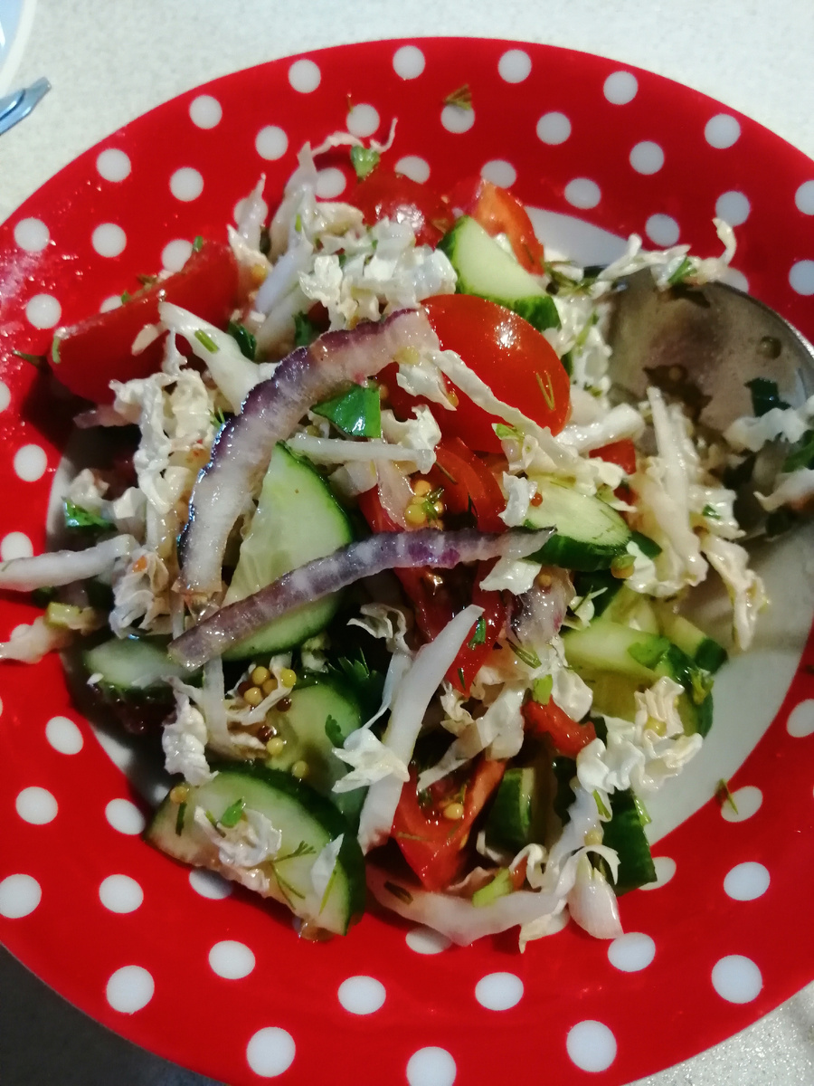 К картошечке можно подать лёгкий, но вкусный и пикантный салат из пекинской капусты"ЗАПАХИ ВЕСНЫ". ☺️