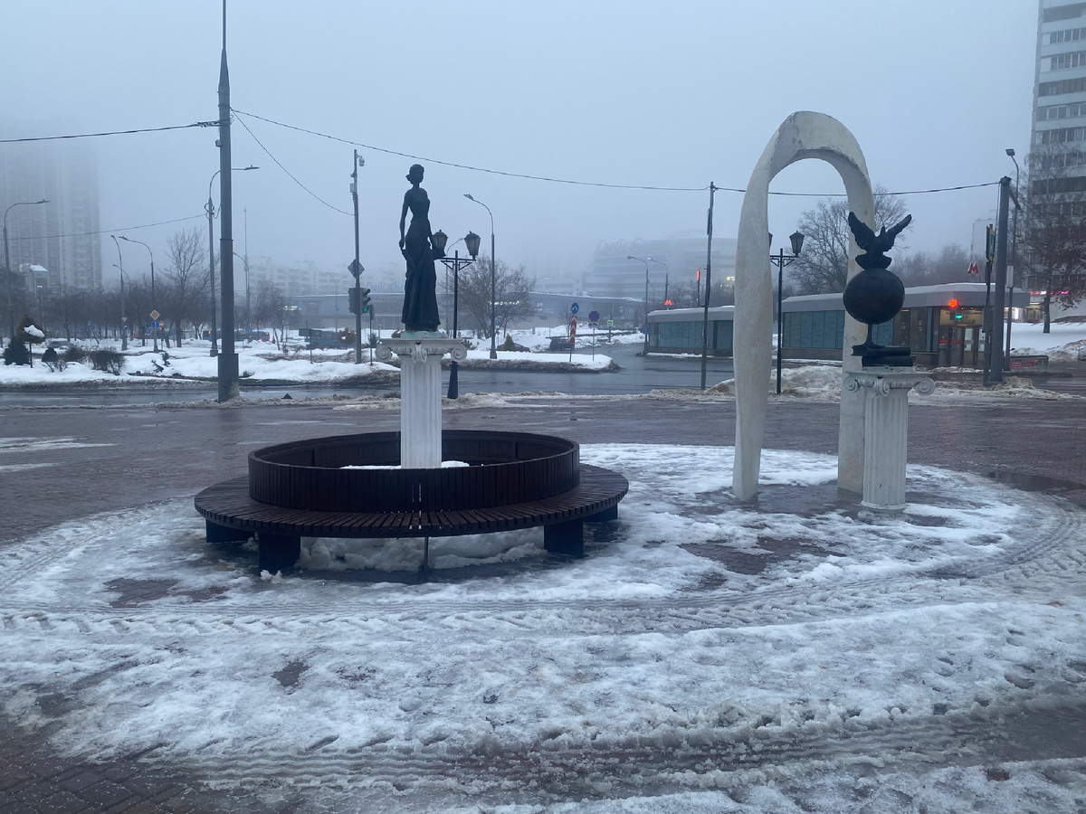 Доехала на трамвае, а дальше пешком до магазина. Под ногами и лёд и реки из расстаявшего снега.